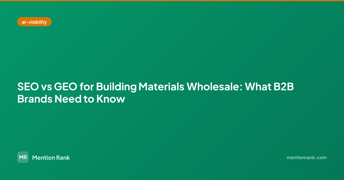 Most building material wholesale brands have decent SEO but virtually no GEO strategy. This creates a gap: