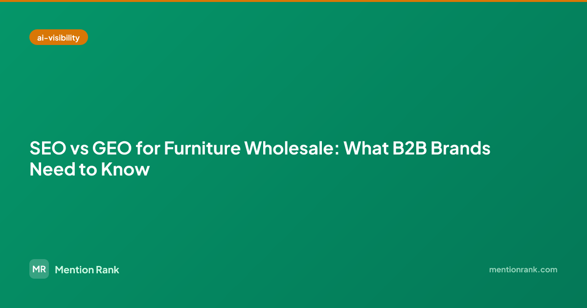 Most furniture wholesale brands have decent SEO but virtually no GEO strategy. This creates a gap: