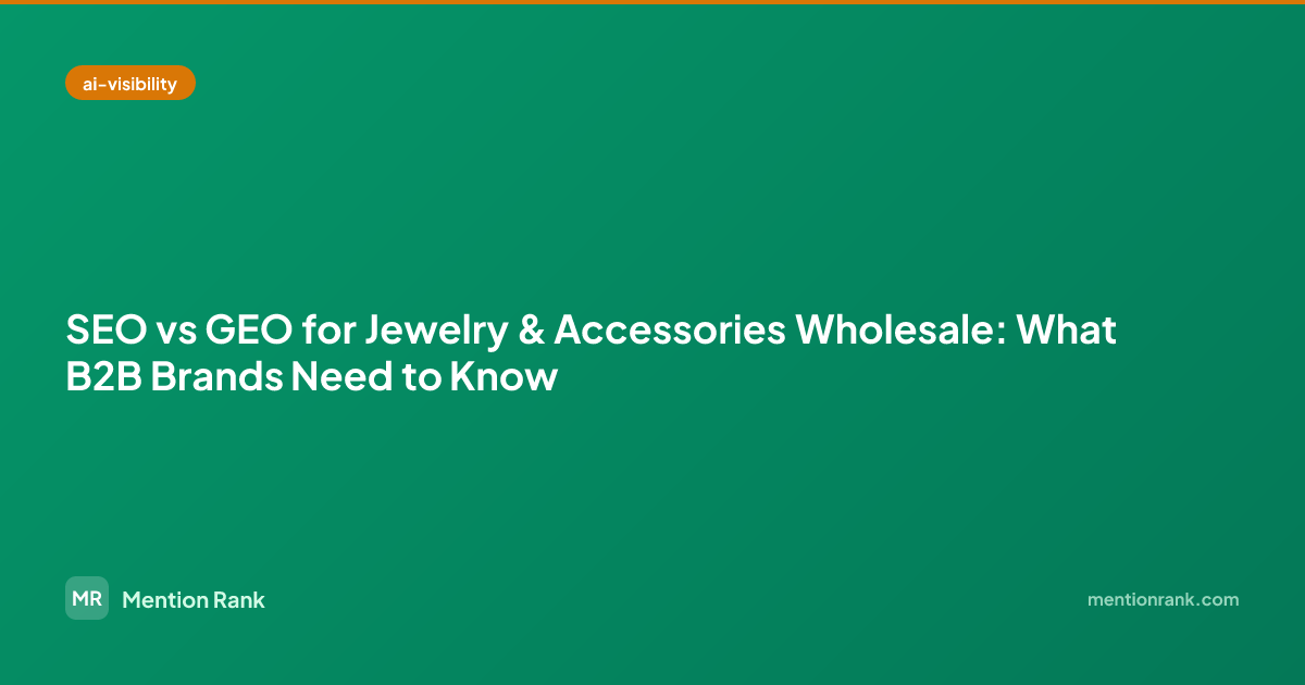 Most jewelry wholesale brands have decent SEO but virtually no GEO strategy. This creates a gap:
