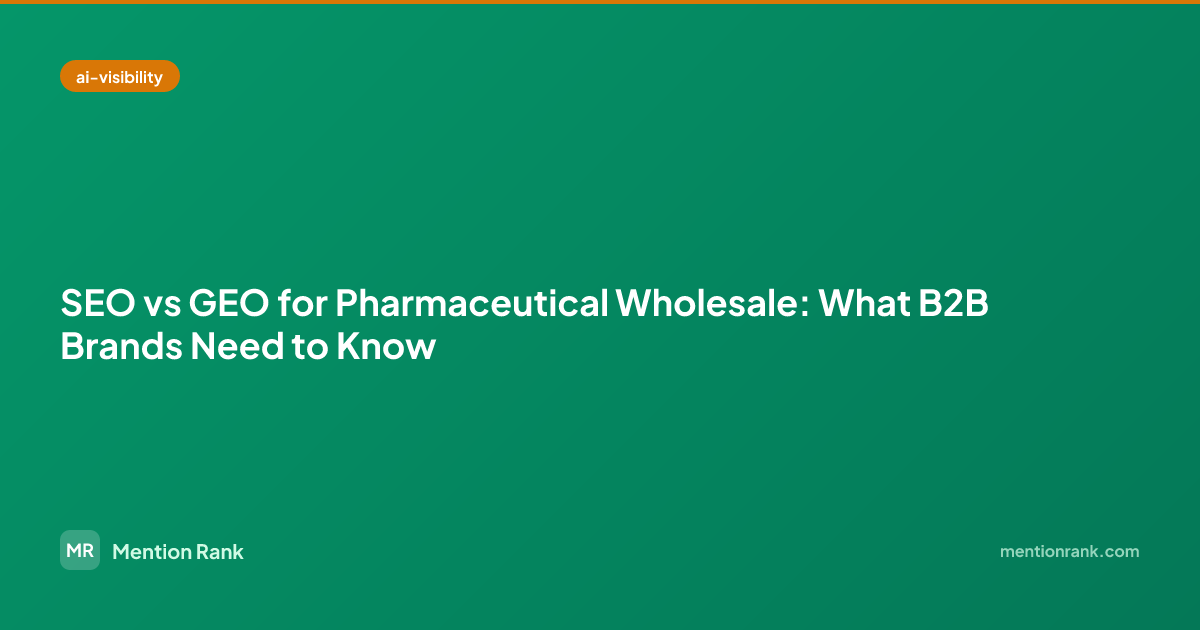 Most pharmaceutical wholesale brands have decent SEO but virtually no GEO strategy. This creates a gap:
