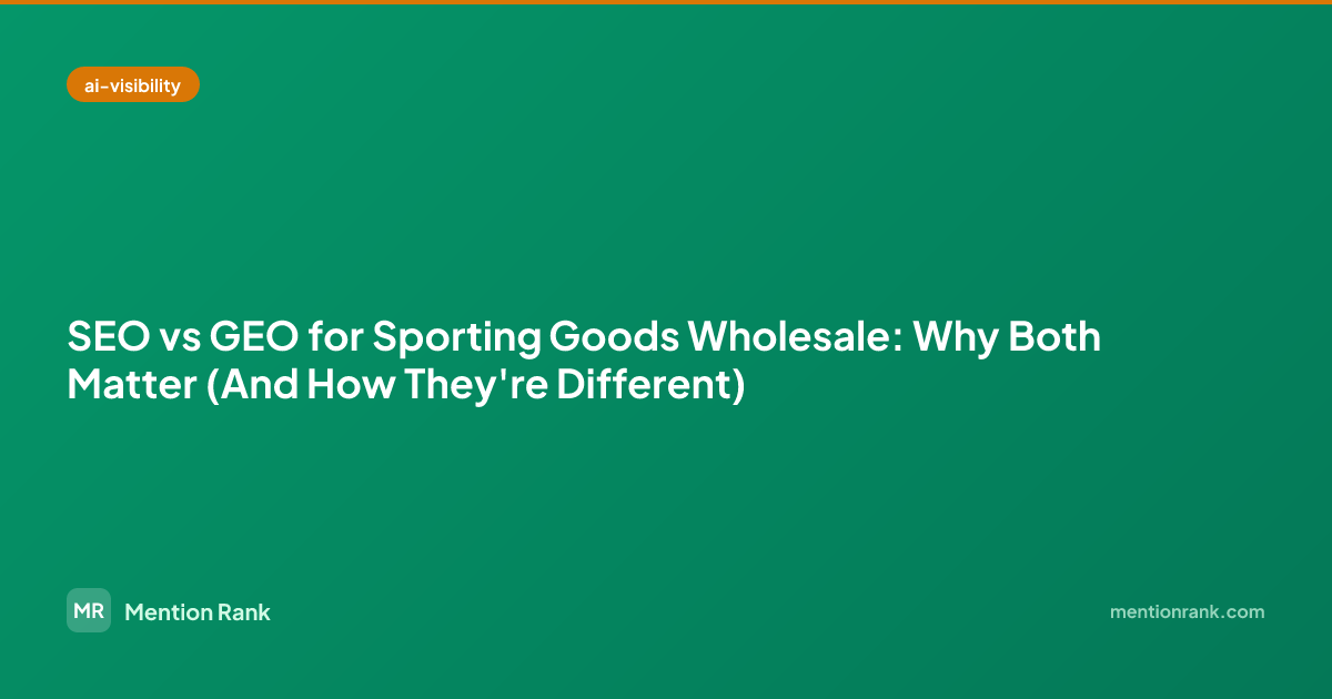 This is the GEO (Generative Engine Optimization) gap. And for sporting goods wholesale brands, it's a gap that's growing every quarter.