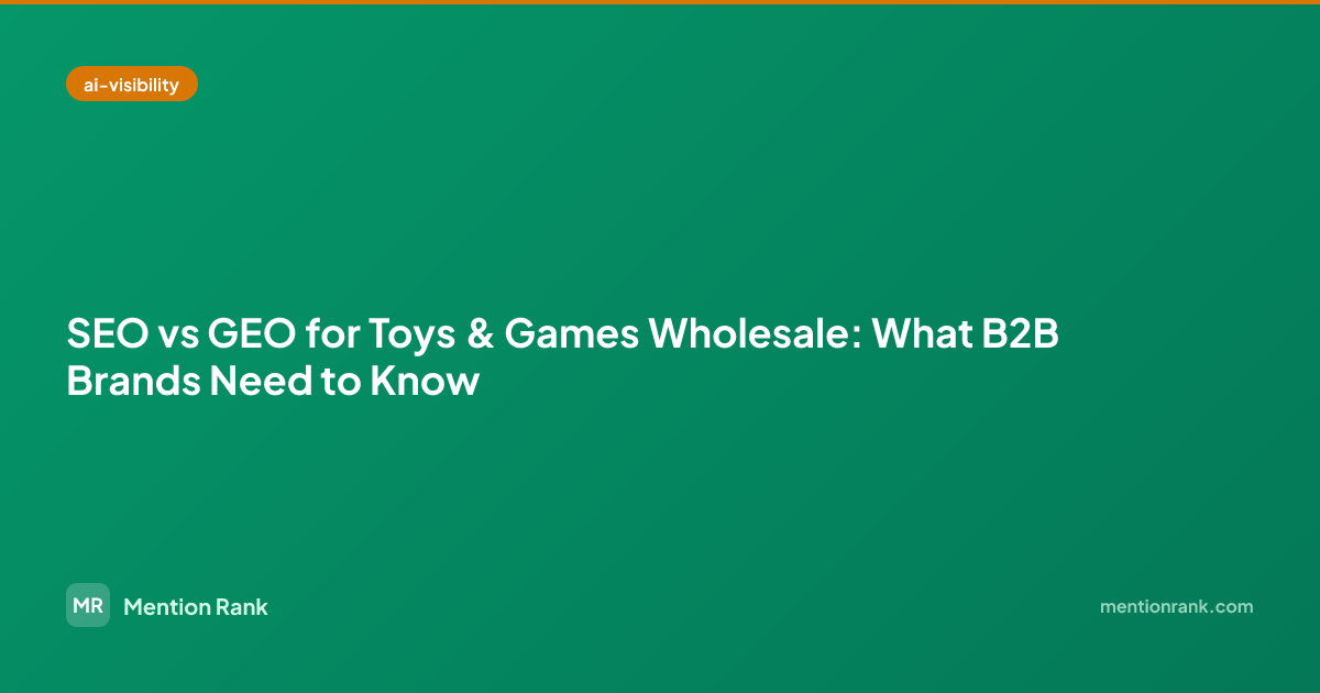 Most toy wholesale brands have decent SEO but virtually no GEO strategy. This creates a gap: